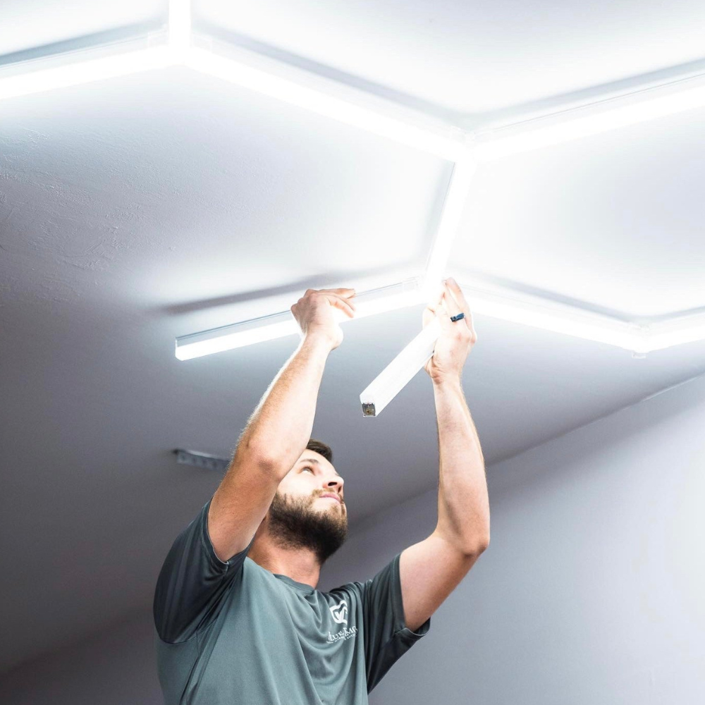 6-HEX Hexagon LED Garage Light – White Modular Grid | HIGHLITE by Lighthaus