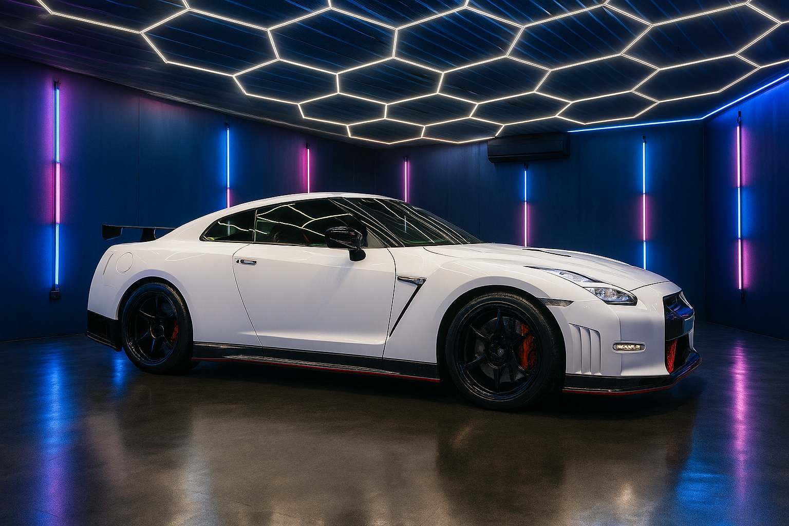 9-HEX Hexagon LED Garage Light – White Modular Grid | HIGHLITE by Lighthaus